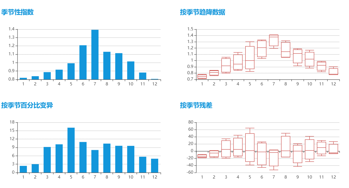 季節性分析分解過程分析時間序列每個季節中季節性指數和變異。