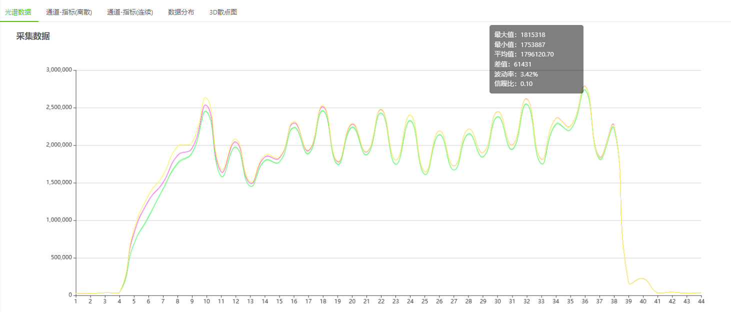 取每組所采集數據進行查看,同組數據波動率在2%以內,數據處于穩定狀態。