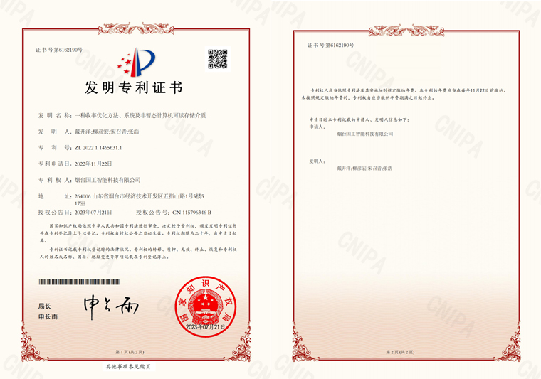 近日,國工智能新添國家知識產(chǎn)權(quán)局頒發(fā)的一項發(fā)明專利證書“ 一種收率優(yōu)化方法、系統(tǒng)及非暫態(tài)計算機可讀存儲介質(zhì)”。